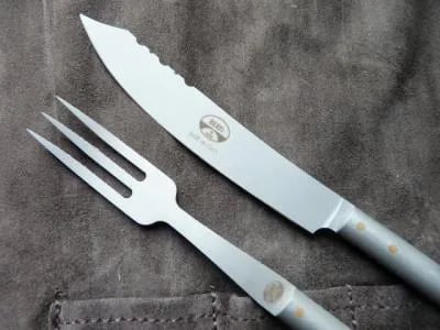 ベルティ社が現代に復活させたスタイリッシュなデザインのステーキナイフ&フォークのセットです。