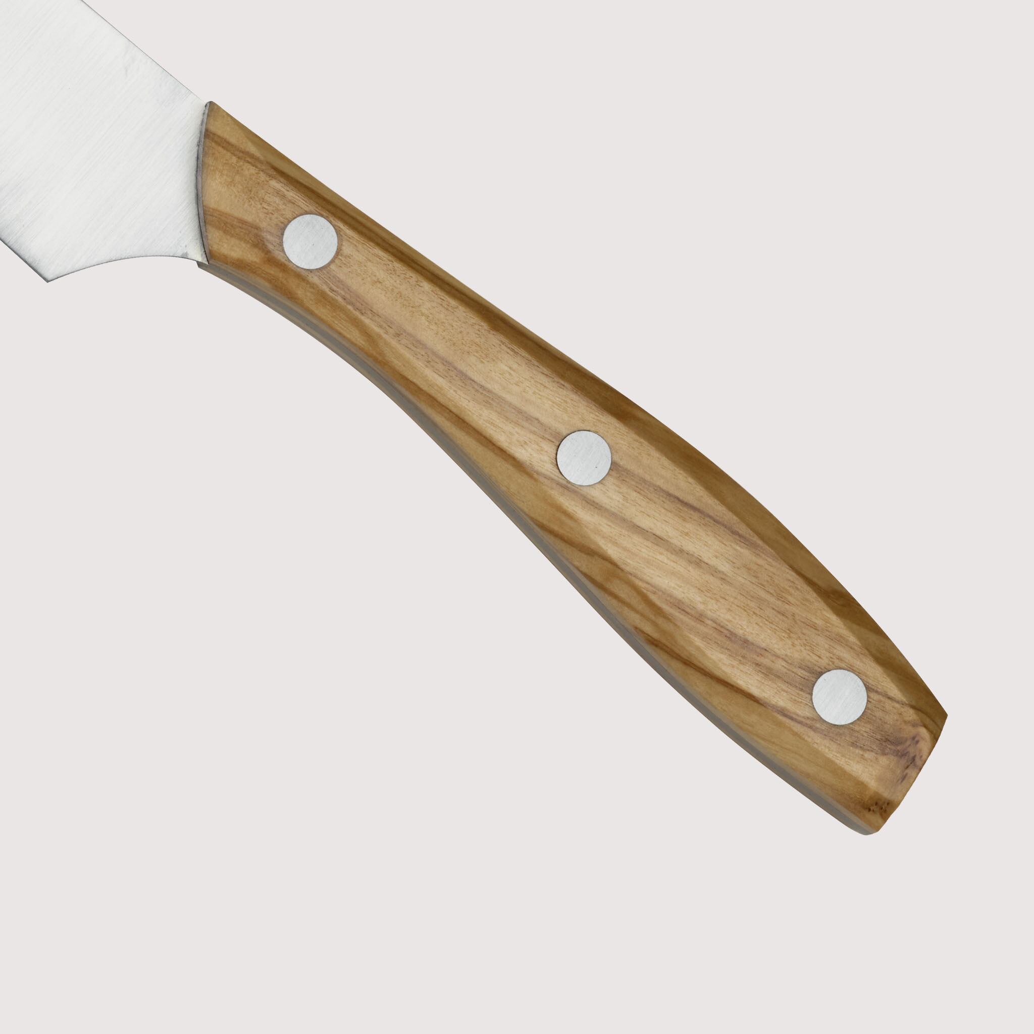 柄の部分はイタリアを代表する木材「オリーブ」を使用しています。使うほどに味が出てきます。