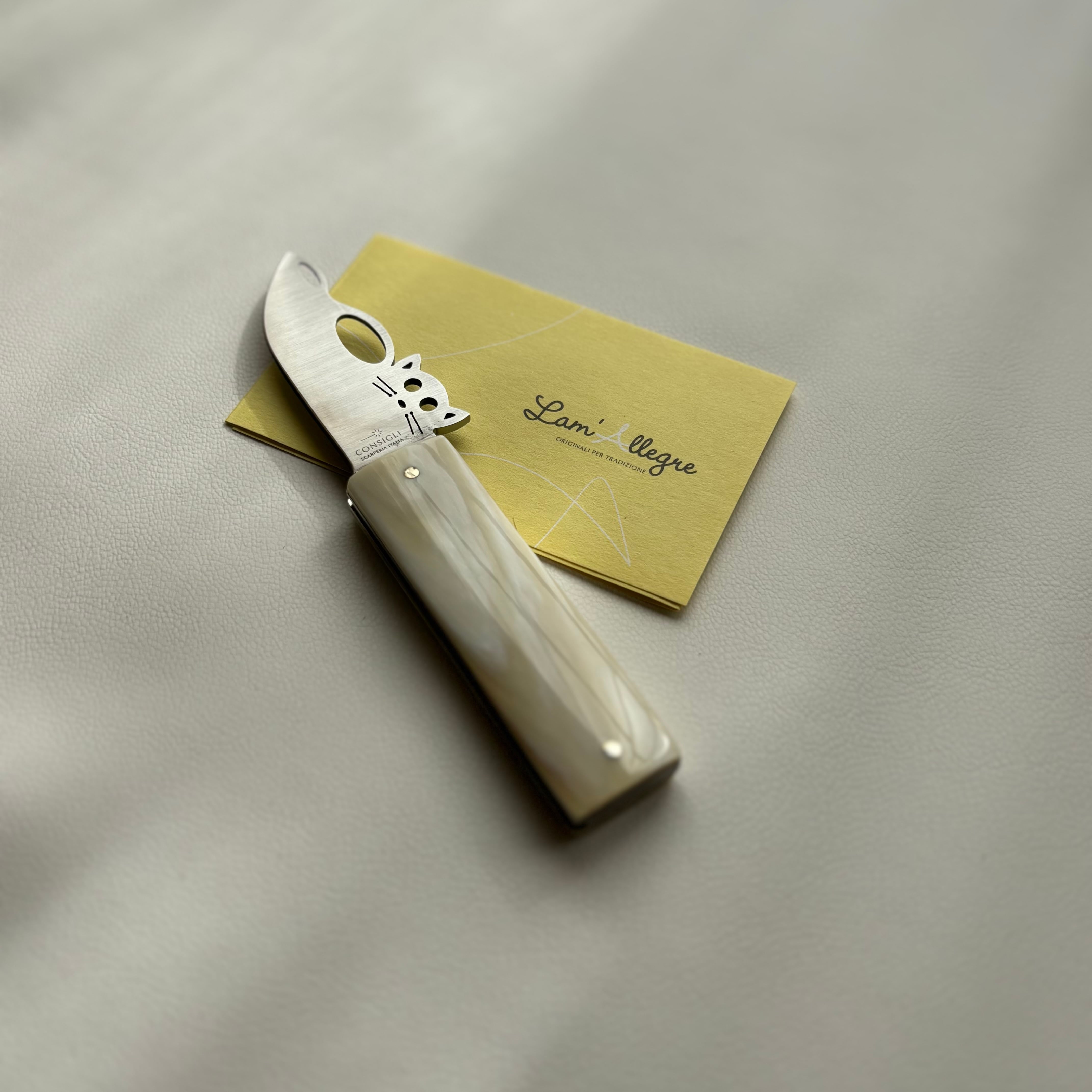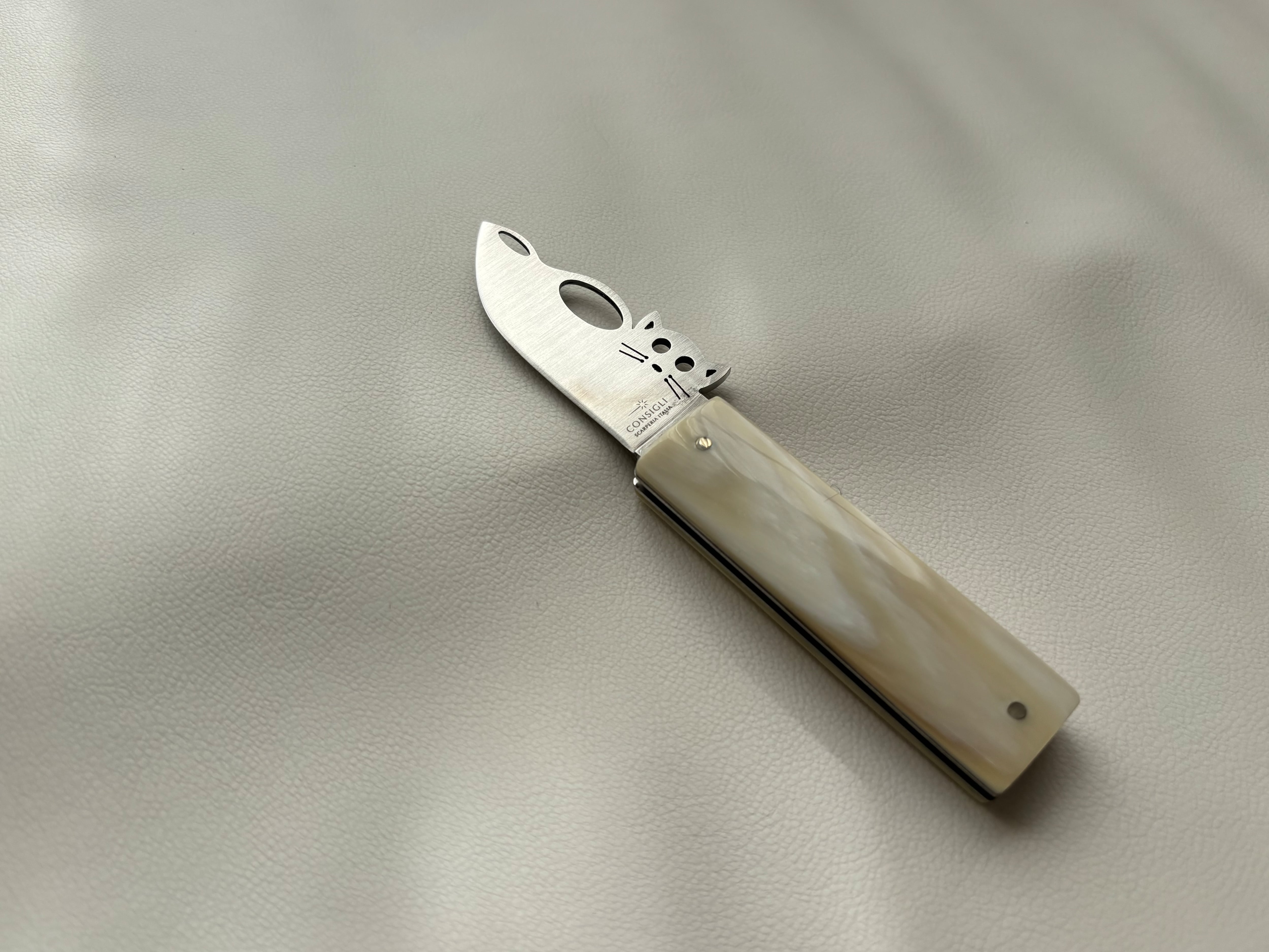 プチナイフ【キャット】は、「刃物=こわいもの」というイメージを、やさしくほぐしたいという想いから生まれました。猫をモチーフにしたデザインは、丸みのあるフォルムと愛嬌のある佇まいが魅力で、まるで小さな相棒のように日常に寄り添います。